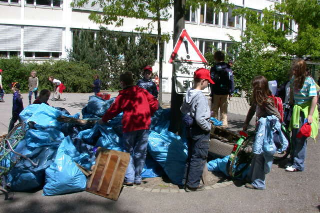 Am Freitag, 19.5.2006, machten sich die SchülerInnen der Reinholf-Schneider-Schule um Littenweiler verdient: Sie schwärmten aus in Strasse, Wald (oben am Eichberg) und Dreisam, um Littenweielr von Unrat zu befreien.