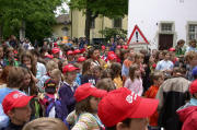 Klasse 2b mit Nora (8 Monate) bei der Dorfputzete am 19.5.2006 im Giersbergweg - tschuwana at aol.com (2) Auf dem Schulhof wird von den Schülern ein riesiger Müllberg präsentiert