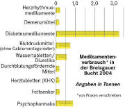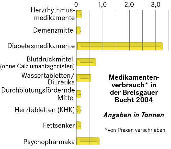 Dass Medikamente auf Umwegen in die Umwelt gelangen, hatte jedoch schon eine frühere Untersuchung aus dem Jahr 1991 gezeigt. Damals stießen Chemiker der TU Berlin bei einer Routinekontrolle im Grundwasser der Hauptstadt zufällig auf Clofibrinsäure, ein Abbauprodukt eines Blutfett senkenden Mittels. Arzneimittelwirkstoffe verschwinden eben nicht einfach, sobald sie ihre Aufgabe im Körper erledigt haben. Vielmehr werden sie mal mehr, mal weniger verändert wieder ausgeschieden und landen im Abwasser. Viele Kläranlagen sind jedoch nicht darauf ausgerichtet, alle Medikamente herauszufiltern. Sie stoßen schnell an ihre Grenzen, wenn die Stoffe nicht im Klärschlamm haften bleiben oder von Bakterien abgebaut werden. Viele der Substanzen sind stattdessen äußerst stabil und wasserlöslich, so dass sie die Kläranlagen nahezu ungehindert passieren und in den Wasserkreislauf gelangen. Knapp 3000 Wirkstoffe sind in der EU zugelassen. Allein in Deutschland werden jedes Jahr insgesamt etwa 38 000 Tonnen verkauft. Betrachtet man die verabreichten Mengen, stehen Mittel gegen Schmerzen und Entzündungen, gegen Diabetes, gegen Bluthochdruck, gegen Epilepsie sowie Antibiotika ganz oben auf der Liste. Hinzu kommen noch rund 2300 Tonnen Tierarzneimittel, vor allem Antibiotika und Parasitenmittel. Über die Gülle finden auch sie schließlich den Weg in Boden und Grundwasser.