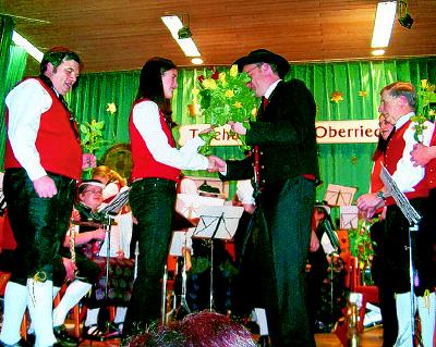 Furore zur Freude der Trachtenkapelle und der Zuhörer machte beim Neujahrskonzert die Jugend der Trachtenkapelle, die Aktiven von morgen. Zum einen überraschten sie mit einem hübschen eigenen Programmteil unter der Leitung ihres Dirigenten Christoph Schönstein. Hier überzeugte Verena Müllers ausgeglichenes Saxophonsolo. Zum zweiten gab es einige Neuzugängen, die bereits in die kleine Jugendabteilung integriert waren. Da staunte das Publikum, wozu kleine Musiker fähig sind, wenn man sie mit unüberseh- und hörbarer Freude und pädagogischem Geschick in die richtige Richtung führt - auch wenn die Beine im Sitzen kaum zum Boden und die Arme kaum hoch zum Schlagwerk reichen. Dies war dem Vorsitzenden Willi Lauby einen ganz besonderen Dank an Christoph Schönsteins wert. Zum dritten standen die stolzen Träger des