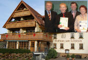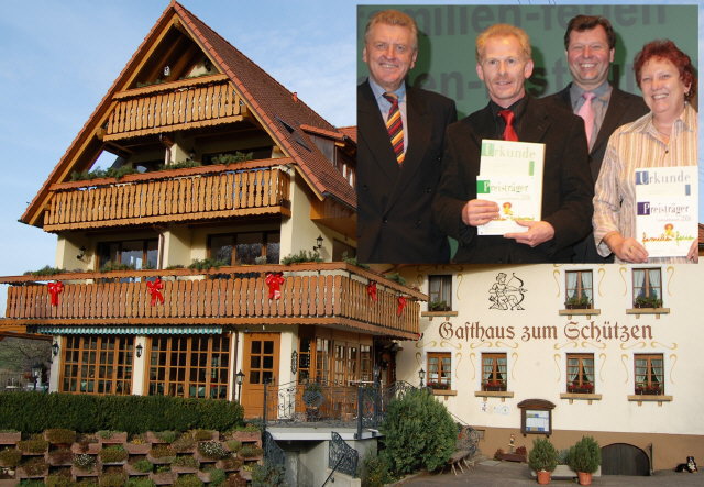 Schmuck und familienfreundlich präsentiert sich der „Schützen“ in Weilersbach. - Minister Ernst Pfister (l.) überreichte mit Unterstützung von Roger Heidt vom Tourismus-Marketing-Verband die Urkunden und Plaketten an Paul und Eveline Heizmann (kleines Bild).