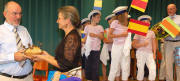 Von Schulrätin Sonja Wasmer erhielt Johannes Reinke als Dank ein „Brot für die Welt“ und Holzfiguren aus Kenia. - Die Schülerinnen und Schüler zeigten ihrem Rektor am Abschiedabend auf vielfältige Weise, wie sehr sie ihn als „Kapitän“ gemocht haben. Fotos: Gerhard Lück