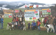 Bürgermeister Franz-Josef Winterhalter (l.) und seine Stellvertreterin Martha Riesterer (4.v.r.) ehrten beim „Schwarzwald-Abend“ in der Steierbartlehof-Scheune treue Feriengäste für vielmalige Aufenthalte in Oberried.   Paul Heizmann und Dominik Kalischko (v.r.) sowie Manuel Heizmann (l.) vom „Schützen“ und „Hirschen-Wirt“ Norbert Burger (3.v.r.) servierten mit Unterstützung freundlicher Landfrauen ein „Schwarzwälder Drei-Gänge-Menü“.