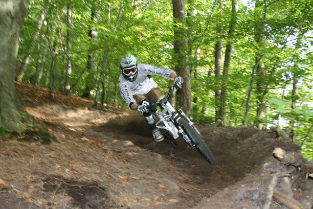 Michael Habighorst ist Chef der Firma Trickstuff, die sich auf spezielles Fahrradzubehör spezialisiert hat, und gleichzeitig begeisterter Mountainbiker. Deswegen war der Wahl-Freiburger auch sofort von der Idee begeistert, die bisher wenig genutzte Mountainbikestrecke, die vom Rosskopf Richtung Jugendherberge führt, fahrradtauglich zu machen. Er selbst fährt wie auch sein Mitarbeiter Arne gerne mit dem Rad auf „seinen Hausberg“, den Rosskopf, und kennt die verfallene Strecke gut. Oft sei es so das einige wenige sich engagierten und viele davon profitieren. Um möglichst viele Mountainbiker aktiv einzubinden, lud Michel Habighorst über ein Internetforum zum gemeinschaftlichen buddeln auf. An einem Samstag im Oktober kamen dann etwa 30 Helfer zusammen und machten sich mit der mitgebrachten Ausrüstung an die Arbeit. Auf der etwa 3,5km langen Strecke wurden Schlaglöcher ausgebessert, störende Büsche beseitig und viele Kurven angelegt, damit das Fahren mehr Spaß macht und es nicht nur einfach geradeaus den Berg runter geht. Während ein anderer Sponsor für die Getränke aufkam, sorgte Trickstuff für die Verpflegung. Mit dem Motto der Aktion „Buddeln für Frieden“ sollte gezeigt werden, dass Sportler im Wald nicht alleine sind und Rücksicht auf Wanderer und die Interessen der Natur, vertreten durch den Förster, aber auch auf die Stadt als Eigentümer wichtig sind. Abgestimmt wurde alle Veränderungen daher mit dem zuständigen Förster. Bewusst wurde ein Weg gewählt, der nicht mit dem Auto erreichbar ist. Schließlich ist der Weg keine private Rennstrecke, sondern ein öffentlicher Wald. Genutzt wird die Strecke von der Szene bereits so intensiv, dass schon bald neue Schlaglöcher ausgebessert werden müssen. Darin sind die Jungs jetzt Spezialisten. Die Buddelei soll zu den Maßnahmen zählen, die im Rahmen der Aktion aktives Freiburg gemeldet werden.