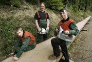 Glatter Schnitt: Die neuen Azubis des Forstamts haben die 40 Meter lange Bank gesägt (Foto: Forstamt)