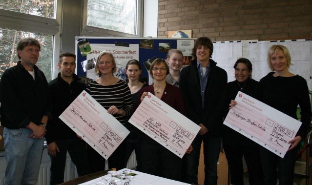 Anlässlich des Sebastian-Festes am vergangenen Freitag war es nun soweit, die Freiburger Straßenschule, die Janusz-Korczak-Schule und die Organisation In Via konnten einen Spendenscheck über jeweils 2100.- Euro und 20 Cent entgegen nehmen.