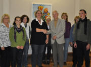 Der monatlichen Dienstbesprechung der Dorfhelferinnen der Station Dreisamtal stattete Gunter Mertznich, Ortsvorsteher von Stegen-Wittental, jetzt einen Besuch ab. Er hatte kürzlich seinen 70. Geburtstag gefeiert und sich von seinen Gästen statt schöner Geschenke eine Spende für die Dorfhelferinnenstation gewünscht. So kamen 560 Euro zusammen, die er nun persönlich auf der Station übergab. „Das Geld können wir gut gebrauchen“, bedankte sich Einsatzleiterin Barbara Nordfeld im Namen aller Mitarbeiter. Immer wieder erlebten sie bei ihren Einsätzen in Familien, dass es am Nötigsten fehle – zum Beispiel sei nicht genug Geld fürs Essen vorhanden oder das Geld zur Reparatur der Waschmaschine sei nicht da. Gunter Mertznich ließ sich von den Dorfhelferinnen alles über die Aufgaben einer Dorfhelferin und Familienpflegerin erklären. Dabei hörte er, dass eine Familie durch eine Krankheit in Notsituationen komme, weil die Kinder und der Haushalt nicht mehr versorgt werden könnten oder eine Kur- oder Rehabilitationsmaßnahme anstehe. Wichtig sei allerdings die Bewilligung der Krankenkasse, bei deren Beantragung die Einsatzleitung den Familien gerne helfe. Mertznich konnte bei seinem Besuch fast das gesamte achtköpfige Team kennen lernen. Durch den Wegfall zweier Mitarbeiterinnen wegen Babypause und Stationswechsel bekam die Dorfhelferinnenstation Unterstützung durch Stefanie Pfaff, einer Familienpflegerin im Anerkennungsjahr und den Familienpfleger Gerrit Grocke. Gunter Mertznich hofft nun, dass seine Geschenkidee Nachahmer findet oder in der Vorweihnachtszeit Firmen die Arbeit der Dorfhelferinnen für Familien finanziell unterstützten.