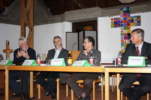 Franz Held (WOGE und ARCHE), Michael Szymnczak (Geschäftsführer der Sozialstation Nördlicher Breisgau), Dr. Peter Krimmel, (Arzt in Stegen), Siegfried Kuster (Bürgermeister von Stegen)
