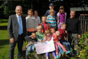 Eine seit Jahren gepflegte gute Nachbarschaft ist dem FSV Rot-Weiß Stegen eine Spende von 500 Euro für die Spielplatzneubauten im Gelände des Bildungs- und Beratungszentrums für Hörgeschädigte (BBZ) in Stegen wert. FSV-Vorsitzender Günter Fehr (l.) überreichte gemeinsam mit seinem Stellvertreter und Jugendleiter Klaus Blattmann (r.) den entsprechenden Scheck an die Kinder des BBZ-Kindergartens. „Wir können für Gymnastik und Jugendtraining die BBZ-Sporthalle nutzen“, freut sich Blattmann, und Fehr ergänzt: „Wenn unser Platz mal gesperrt ist, können wir auf dem Schulplatz trainieren.“ Und BBZ-Schüler, die am Wochenende daheim in Fußballmannschaften spielten, kämen unter der Woche gerne zum FSV-Training. BBZ-Direktor Hartmut Jacobs ist für die FSV-Spende sehr dankbar. Sie sei ein weiterer Baustein für den gerade im Bau befindlichen neuen Spielplatz. Rund 30.000 Euro kämen inzwischen aus Spenden zur Finanzierung des weit über 100.000 Euro teuren Spielplatzes. Und wenn der fertig sei, wäre der Kindergarten-Spielplatz an der Reihe. Auch der habe eine Sanierungskur dringend notwendig.