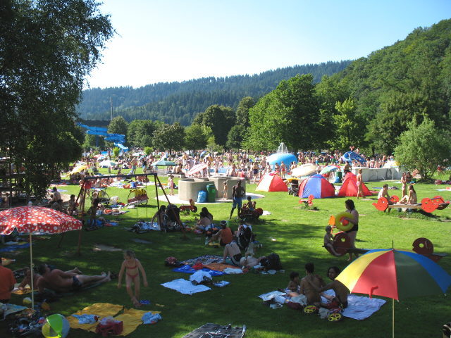 Städtisches Freibad zwischen Littenweiler und Ebnet in der Nähe der Dreisam. Beheizte Becken, große Liegewiesen, neues Kinderplantschbecken, Hüpfburg, riesengroße Liegewiesen. Unmittelbar neben dem SC-Stadion gelegen: Anhand des Applauses können Sie akustisch erfahren, wieviele Tore der Sportclub gerade erzielt hat.