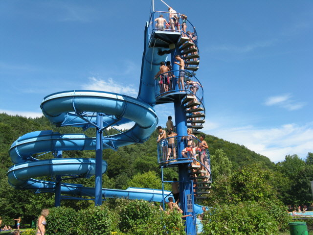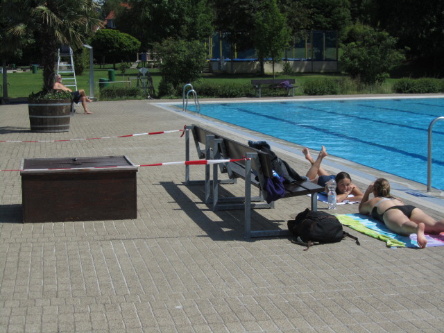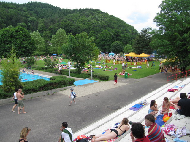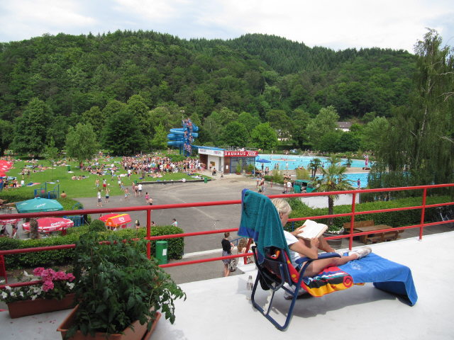 Strandbad am 6.6.2010 Strandbad am 6.6.2010: Oben auf der Terrasse in Ruhe ein Buch lesen Strandbad am 26.8.2010: Warteschlange an der großen Rutsche