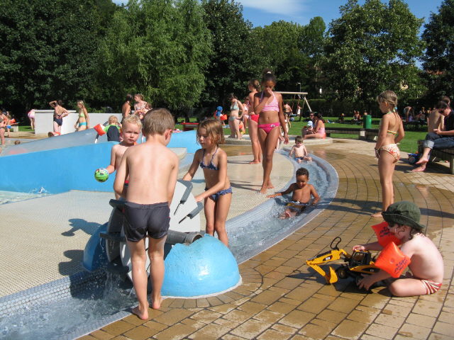 Kinderplantschbecken im Strandbad am 6.6.2010: Blick nach Norden Hüpfende Jungens im Strandbad am 6.6.2010 Hüpfende Seniorin im Strandbad am 6.6.2010