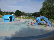 Blick nach Westen: Rutsche zum Nicht-schwimmerbecken im Strandbad am 6.6.2010 Kinderplantschbecken im Strandbad am 6.6.2010: Blick nach Norden - Wasserrad