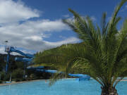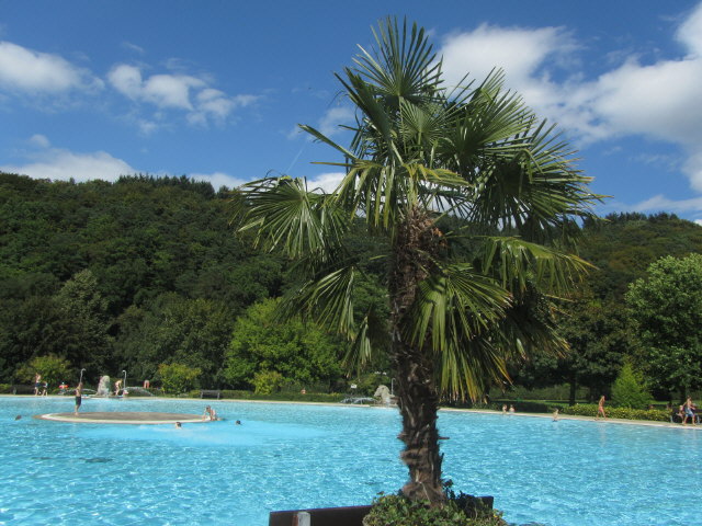 Blick nach Nordosten im Strandbad am 6.9.2010:  Palmen am Pool
