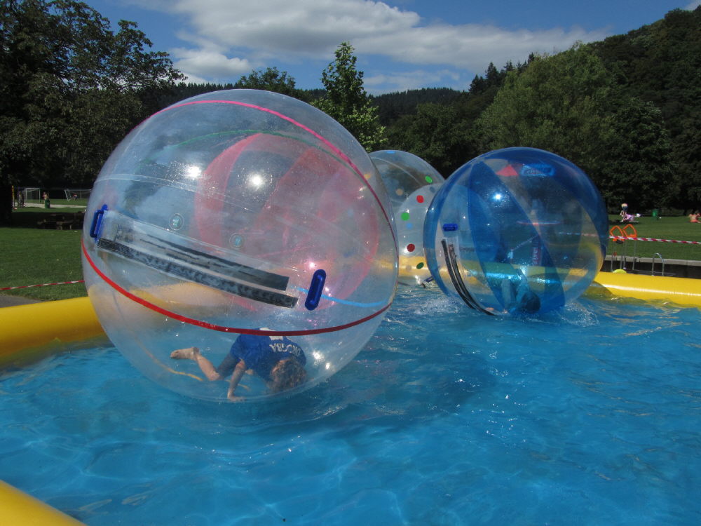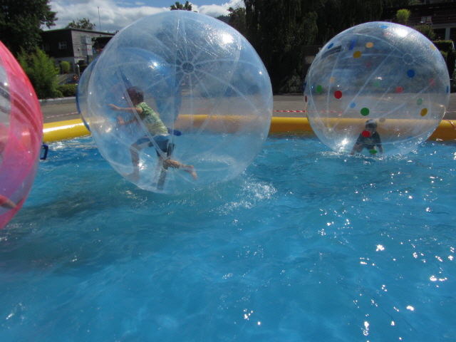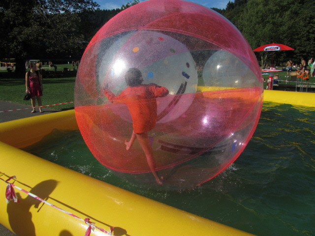 Waterball im Strandbad am 13.8.2011: Waterball im Strandbad am 13.8.2011: Blick nach Westen Waterball im Strandbad am 13.8.2011: Balance halten oder fallen