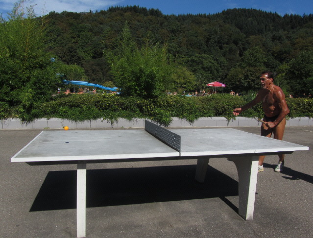 (4) Strandbad-Tischtennis am 10.9.2011: Vor Adolfs Ball flüchtet der Gegner