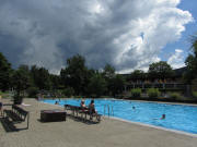 Blick nach Westen: Beheiztes Schwim-merbecken im Strandbad am 6.6.2010