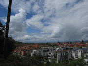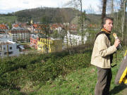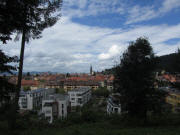 Wasserschlössle im Sternwald - Blick auf die Stadt In der Zeit von 1888 bis 1913, während Otto Winterer als Oberbürgermeister die Geschicke der Stadt Freiburg an oberster Stelle mitbestimmte, war es gang und gäbe, dass neue oder restaurierte öffentliche Gebäude sich in historischem Stil präsentierten. Monumentale Türme, Zinnen und Erker prägten das Stadtbild der sogenannten "Gründerzeit" . Es ist deshalb nicht verwunderlich, dass bei dem Bau eines neuen Trinkwasser-Hochbehälters dieses technische Bauwerk mit pompöser Fassade versehen wurde. Seit dem frühen Mittelalter wurde die Stadt Freiburg mit dem Wasser, das aus Quellen im "Mösle" unterhalb des Bromberges (ursprünglich Bronnberg) stammte, versorgt. Es wurde über hölzerne Wasserleitungen (Deicheln) in die Stadt geführt und speiste dort die vielen Laufbrunnen, aus denen die Freiburger Bürger ihr Trinkwasser holten. Die noch heute vorhandenen "Bächle" , der Gewerbekanal und die sonstigen Runzen erhielten dagegen seit eh und je ihr Wasser aus der Dreisam. Erst in der Mitte des 19. Jahrhunderts wurden die hölzernen Deicheln durch gusseiserne Röhren ersetzt und die gestiegene Wassernachfrage durch den Bau weiterer Tiefbrunnen im Möslegebiet gesichert. Der starke Bevölkerungszuwachs gegen Ende des vorletzten Jahrhunderts führte zum Bau eines Wasserwerkes bei Ebnet (1872 bis 1876), wo man aus dem Grundwasser der Dreisam erhebliche Mengen schöpfte. Diese wurden in einen am Hange des Schlossberges gebauten Hochbehälter, der 4000 Kubikmeter Wasser fasste, geleitet und dort gespeichert. Durch den Anschluss von immer mehr Privathaushalten an das Wassernetz und die Beseitigung der Abwässer über die inzwischen installierte (Schwemm-)Kanalisation reichte auch bald diese Kapazität nicht mehr aus. Man erschloss deshalb weitere Sammelstellen für Grundwasser (Neuhäusel), verlegte neue Großzuleitungen und begann 1895 mit dem Bau eines weiteren Hochbehälters am Sternwaldeck (Glümerhöhe), der mit diesem Wasser gefüllt wurde. Diese neue Wasserkammer ist 45 Meter lang, 33 Meter tief sowie 6 Meter hoch und fasst 3600 Kubikmeter. Noch heute wird von hier der gesamte Freiburger Osten mit Trinkwasser versorgt. Vor den Speicher baute man nach den Plänen des Hochbauamtes eine mittelalterliche Burgfassade aus hellen Sandsteinquadern. Sie ist mit ihren drei Türmen, den krönenden Zinnen und Torbögen einem alten Stadtsiegel aus dem Jahre 1245 nachempfunden und führte dazu, dass der imposante Baukomplex im Volksmund als "Wasserschlössle" bezeichnet wird. Eine Brunnenschale, in die aus einem bronzenen Löwenkopf das kühle Nass sprudelt, ist in die mittlere Tornische eingelassen. Im Innern ist außerdem ein kleines Museum eingerichtet, das über die Freiburger Wasserversorgung informiert. Das frühe Stadtsiegel mit dem Symbol der "freien Burg" findet man übrigens auch auf den alten gusseisernen Kanaldeckeln, die in der Freiburger Innenstadt zu finden sind. Sie sind allerdings schon vor dem Bau des "Wasserschlössle" entstanden und zieren bereits seit 1872 die begehrten Schmuckstücke. Von Anfang an war das "Wasserschlössle" ein beliebtes stadtnahes Wanderziel. Von hier hat man einen sehr schönen Blick auf Freiburg mit Münster und Schwabentor. Diese Aussicht über die Türme und Zinnen des Wasserspeichers zeigt auch die Postkarte aus dem Jahre 1909. Damals hatte man noch eine von Bäumen unverdeckte Sicht, die in den Jahren nach dem Zweiten Weltkrieg immer mehr zuwucherte. Erst zur Hundertjahrfeier des "Wasserschlössle" wurde wieder eine freie Sicht geschaffen und das Jubiläum mit einem großen "Brunnenfest" rund um das Bauwerk gefeiert. Rund 5000 Besucher zählte damals die Veranstaltung, die seither jährlich wiederholt wird. Dass dies nicht das erste und einzige Fest am Sternwaldeck war, zeigt schon eine Postkarte aus dem Jahre 1898. Damals lud die Stadt Freiburg am 9. Juli zu Ehren der Universität und der Immatrikulation des 1500. Studenten auf die Plattform des Wasserwerkes ein, und aus dem Trinkbrunnen floss statt reinem Wasser frisch gebrauter Gerstensaft. Alles von Hans Sigmund am 30.10.2006 auf www.badische-zeitung.de lesen