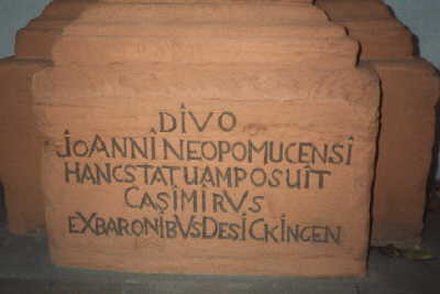 Auf der Dreisambrücke bei Ebnet steht der große Bildstock des Heiligen Nepomuk, des in ganz Deutschland und den alten Habsburger Ländern bekannten Brückenheiligen.. Er gilt als Bewahrer des Beichtgeheimnisses und ist der Schutzpatron aller am Wasser Lebenden und Arbeitenden. Die lateinische Inschrift unter der Statue enthält die in einem Chronogramm verschlüsselte Jahreszahl der Aufstellung der Statue: 1725 durch Casimir aus dem Haus der Barone von Sickingen. Foto: Hermann Althaus