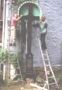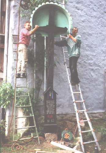 Aufrichtung des späteren „Missionskreuzes" hinter der St.Gallus -Kirche