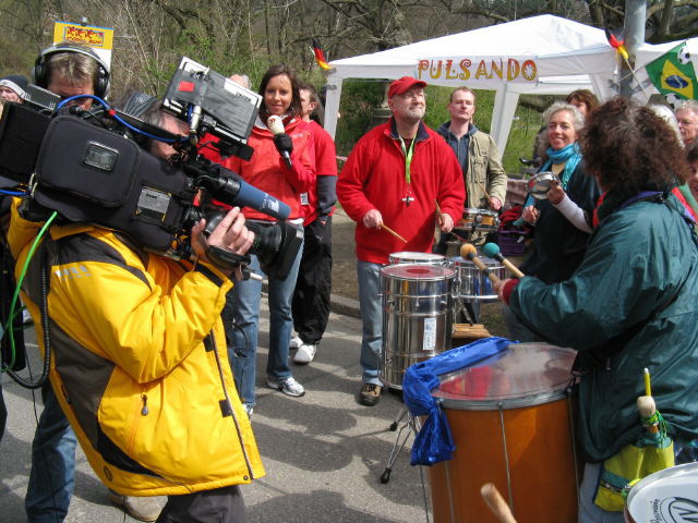 SWR-Fernsehen am Sandfang 6.4.2008 interviewt sambasta.de beim Freiburg-Marathon
