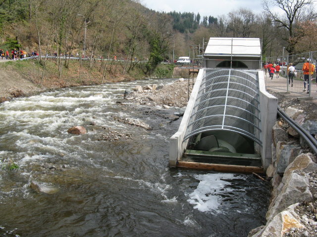 Blick nach Osten am Sandfang am 6.4.2008 - Freiburg-Marathon bei der Wasserkraftanlage