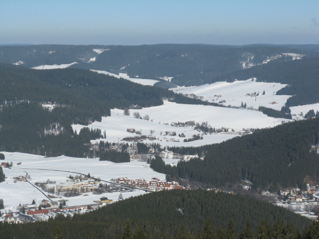 Tele-Blick vom Hochfirst am 11.1.2008 nach Norden auf Neustadt mit Jostal (Mitte links hoch) und Langenordnachtal (rechts)