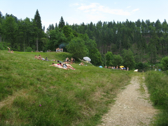 Nonnenmattweiher am 8.7.2010: Blick nach Westen - Badestrand links