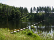 Besitzer einer Fischerei-Erlaubniskarte können im See angeln, Tageskarten in der Fischerhütte.