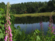 (4) Nonnenmattweiher am 8.7.2010: Links Badeteil, rechts Naturschutzgebiet Nonnenmattweiher am 8.7.2010: Fingerhut mit Biene Nonnenmattweiher am 8.7.2010: