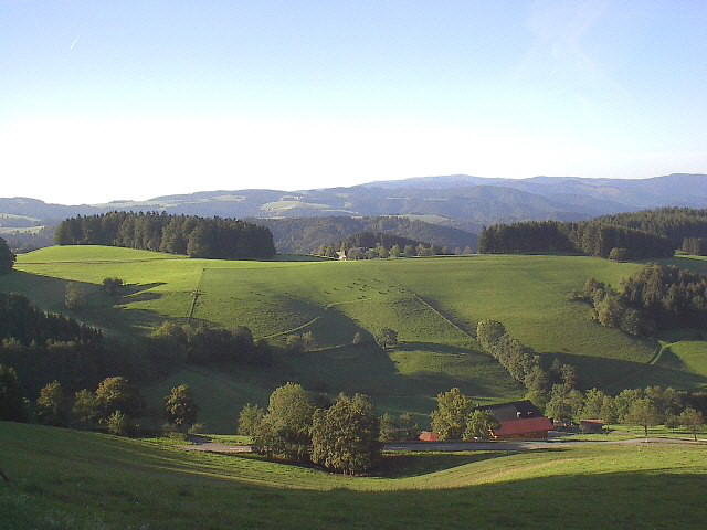 Blick vom Sträßchen zum Kapfenmathishof nach Süden über Kapfenhof zum Zwerisberg mit Fallerhof am 18.9.2004  ... zwischen St.Peter und St.Märgen Ende September 2004