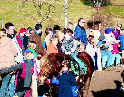 Eine einfallsreiche Gemeinschaft sind die "Reitermädels Schafhof" und eine engagierte dazu. Das bewiesen sie einmal mehr mit ihrer spontanen Aktion "Ponyreiten für die Flutopfer Südostasiens". Bei schönstem Sonnenschein standen die kleinen Reitanwärterinnen und -anwärter beim Schafhof in St. Peter ungeduldig Schlange, um Runde für Runde auf dem Rücken der Pferde das Glück der Erde erspüren zu dürfen. Derweil genossen die Erwachsenen nebst der Freude der Kinder das herrliche Wetter. Begleitern, Eltern, Familien und Freunden winkten nach lustigen Reit-runden Kaffee, Kuchen und Waffeln zur Stärkung.