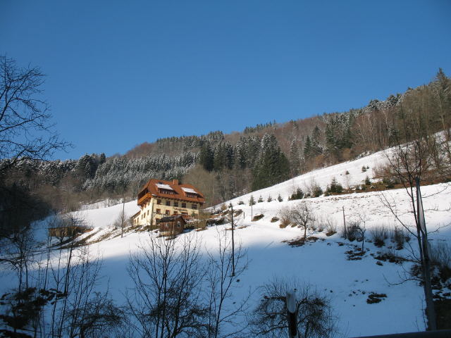 Blick nach Westen zum Café und Restaurant Schuler im Sägendobel am 15.3.2006
