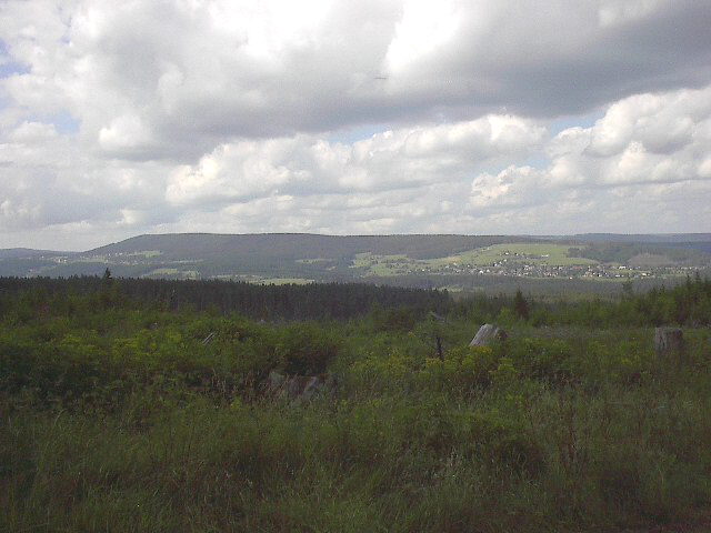 Blick von der Strasse Dresselbach-Grünwald nach Norden auf Saig (links), Hochfirst (Mitte) und Kappel (rechts) am 16.8.2004