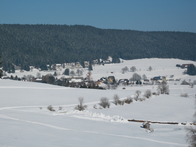 Blick nach Norden über die alte Saiger Dorfkirche hoch zum Hochfirst am 4.1.2006 Blick vom Hochfirst am 11.1.2008 nach Süden über Saig zu Altglashütten (rechts) und Raitenbuch (Mitte)