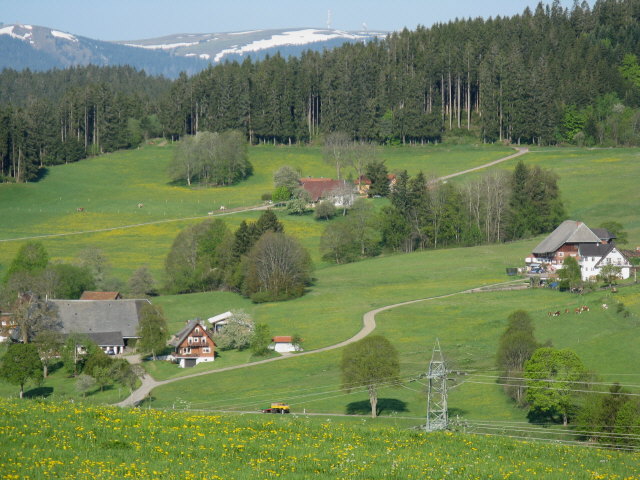 Tele-Blick nach Südwesten über den Neubauernhof und Felsenhof (rechts) zum feldberg am 13.5.2008