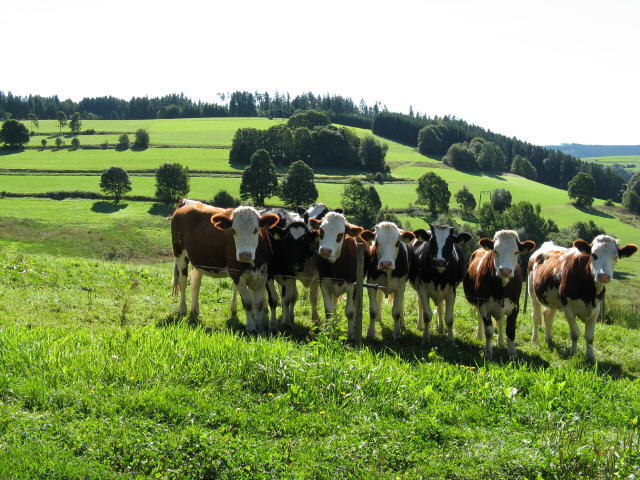Tele-Blick von der Strasse Dresselbach-Grünwald nach Norden auf Saig am 14.5.2008 Blick nach Südosten von Saig-Hof zum Kuhberg am 9.9.2008 - rechts unten Talstation vom Großen Kuhberglift Blick nach Südosten von Saig-Hof zum Kuhberg am 9.9.2008 - neugierige Kühe