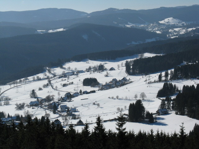 Tele-Blick von Berg über das Haslachtal nach Nordwesten auf Saig am 23.1.2008 - links die Saiger Höhe