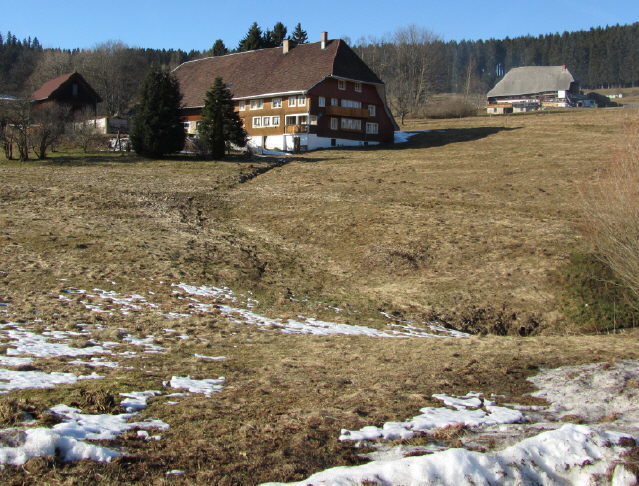 Blick nach Norden zum Waldhaus oberhalb Saig am 14.3.2006   Blick nach Südwesten auf den Wanderweg bei der Saiger Höhe