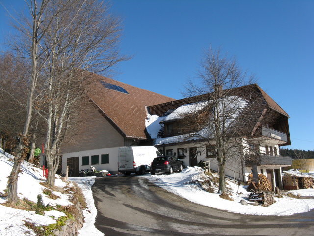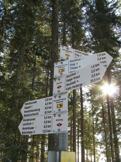 Blick von der Bank am Waldrand oberhalb Vitenhof nach Südwesten über Saig zum Feldberg am 25.1.2009 Blick von der Balzenwaldhütte (1141 m) nach Süden über Leutkirch-Berg (Wiese links) zum Feldberg (rechts) am 25.1.2009 Blick nach Südosten zum Weigweiser "Balzenwaldhütte (1141 m)": 0,6 km Hierabrunnnen, 1,6 km Hochfirst, 3 km Saig  am 25.1.2009