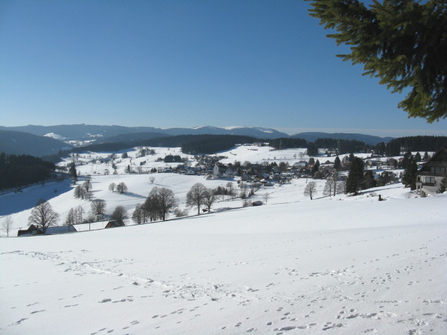 Tele-Blick vom Rotkreuzweg nach Norden auf Saig bis zum Vitenhof rechts am 14.3.2006 Blick nach Norden zum Waldhaus am 25.1.2009 - rechts der Weg zum Hochfirst Blick nach Süden über Saig zum Feldberg am 25.1.2009