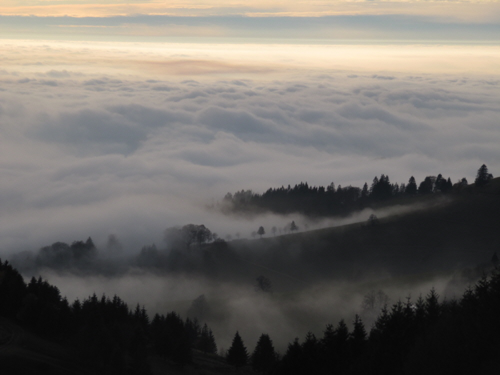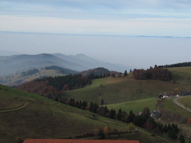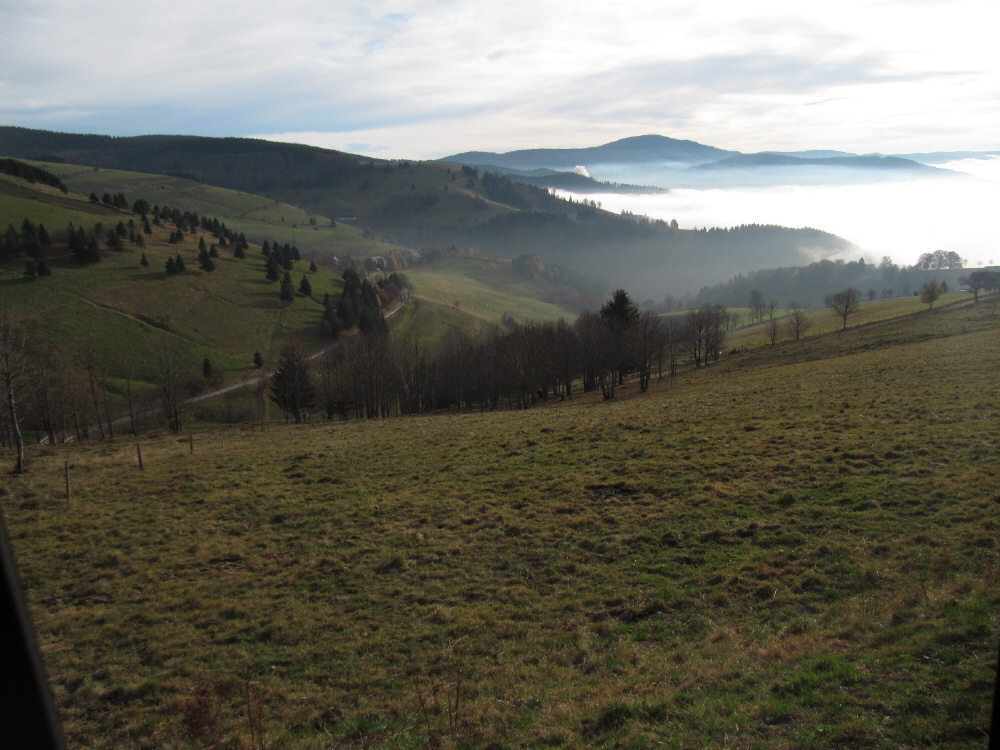 Blick von der Schindelmatt nach Südwesten zu Stohren, Hanselmichelhof und Rheintalnebel am 31.10.2009