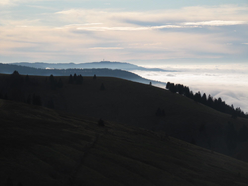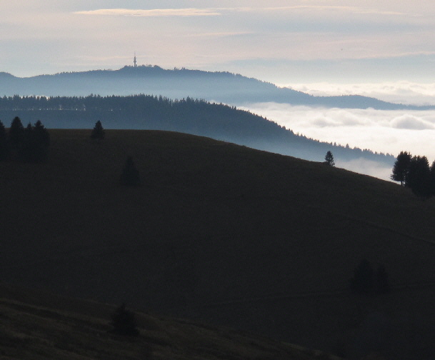 Blick vom Gießhübel nach Süden über den vernebelten Stohren zum Belchen am 5.12.2004