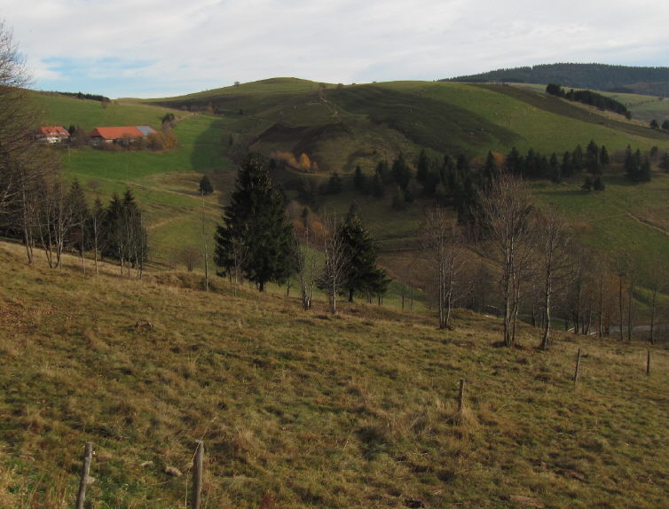 Blick nach Osten über Schindelmatt  bzw. Hörnle am Stohren am 6.11.2011 Blick über die Schindelmatt nach Süden zu Stohren, Münstertal und Rheintalnebel am 31.10.2009