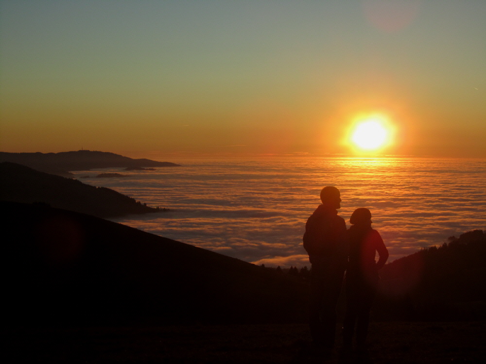 (4) Schindelmatt am Schauinsland am 15.11.2011 gegen 16.30 Uhr: Ein Paar Schindelmatt am Schauinsland am 15.11.2011 gegen 16.30 Uhr: Die Sonne versinkt im Nebelmeer (6) Schindelmatt am Schauinsland am 15.11.2011 gegen 16.30 Uhr: Blick nach Norden - die Zuschauer