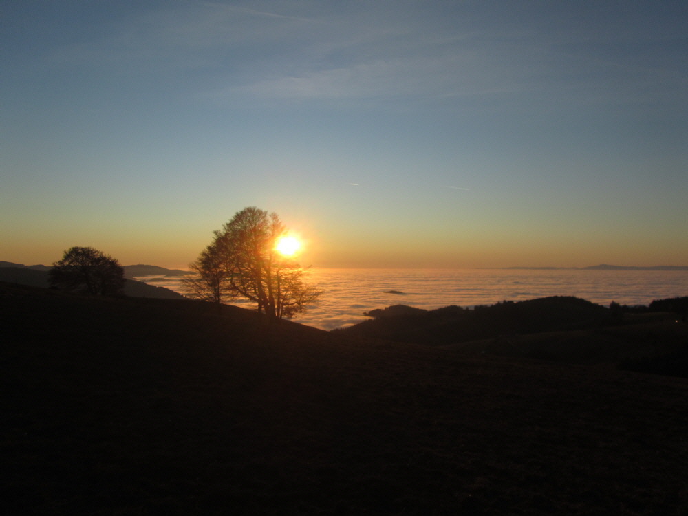 Allabendlich zwischen 16 Uhr und 17 Uhr finden sich zahlreiche Schaulustige oben am Schauinsland ein, um zu schauen, wie die Sonne langsam im Nebelmeer des Oberrheingrabens versinkt. Was die Sonne so alles vemag: