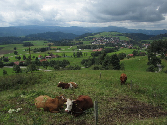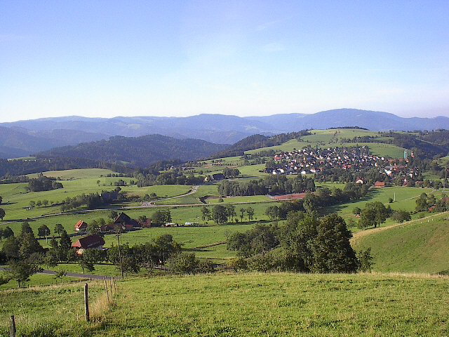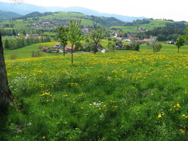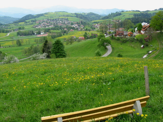 Blick vom Berghof im Schmittenbach nach Süden am 7.5.2009 auf St.Peter, Lindenberg (Mitte oben) und Hornberg (rechts) Tele-Blick vom Berghof im Schmittenbach nach Süden am 7.5.2009 auf St.Peter und Lindenberg