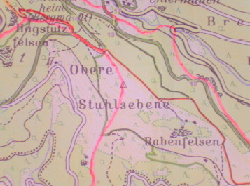 Stuhlsebene hinab in die Wilde Belna zieht sich die Grenzlinie durch das Land.