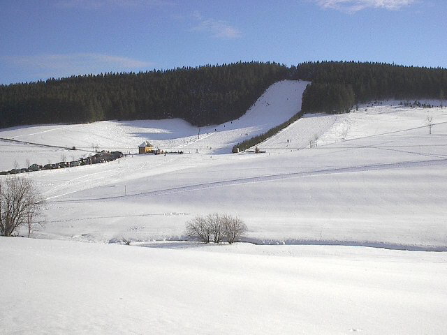 Blick nach Norden zum Rößle am 8.2.2005 - links Pkws des Lifts