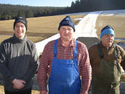 Klaus Schuler am Telefon, um eine groß angelegte Aktion für den Montag zu starten. Mit sieben Schleppern und Anhängern waren viele Helfer schließlich acht Stunden lang am Montag im Einsatz, um von Roturach, einem Grundstück von Peter Eckert, Schnee zu holen und diesen auf den gegenüberliegenden Hang des Schneckenhofes zu transportieren. Auf 1100 Meter Länge lag auf dem schattigen Flecken noch rund ein halber Meter Schnee, der Mittels Schneefräse und Schaufellader auf die Hänger befördert wurde. Fünf Landwirte, sowie zwei Fahrzeuge des gemeindlichen Bauhofes, beteiligten sich an dieser für Eisenbacher Verhältnisse einzigartigen Aktion. 80 Fuhren mit Schnee wurden zum Schneckenhof gefahren. Dabei war der Schneetransport über Funk geregelt, damit es auf dem schmalen Sträßchen Richtung Hochberg keine Engpässe gab. Am Hang beim Schneckenhof wurde der Schnee verteilt, Privatpersonen, Mitarbeiter des Bauhofes und Bürgermeister Alexander Kuckes verteilten den Schnee und schufen eine Piste am mobilen Skilift. Fest stehe, erklärte Bürgermeister Kuckes, dass es ein abgespecktes Programm geben wird. Der konkrete Ablauf des Jubiläumswochenendes auf dem Hang am ersten Skilift der Welt, wurde erst gestern Abend besprochen.